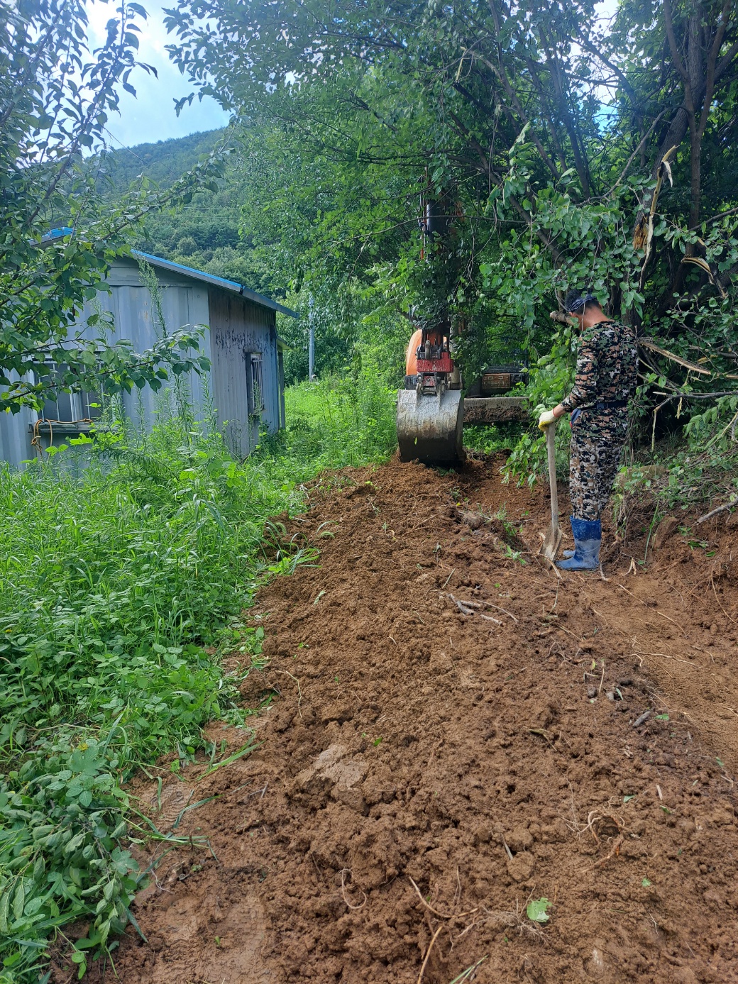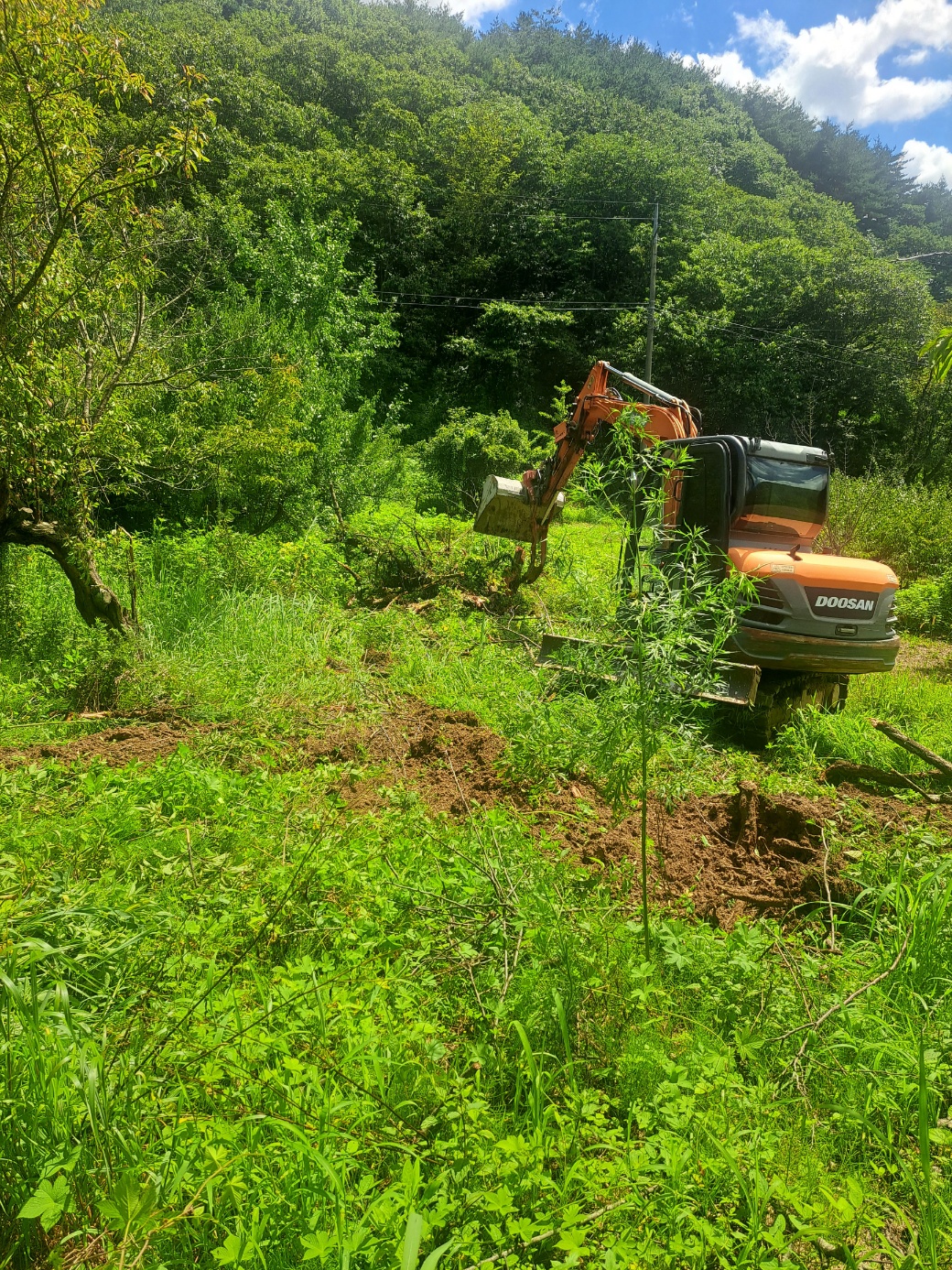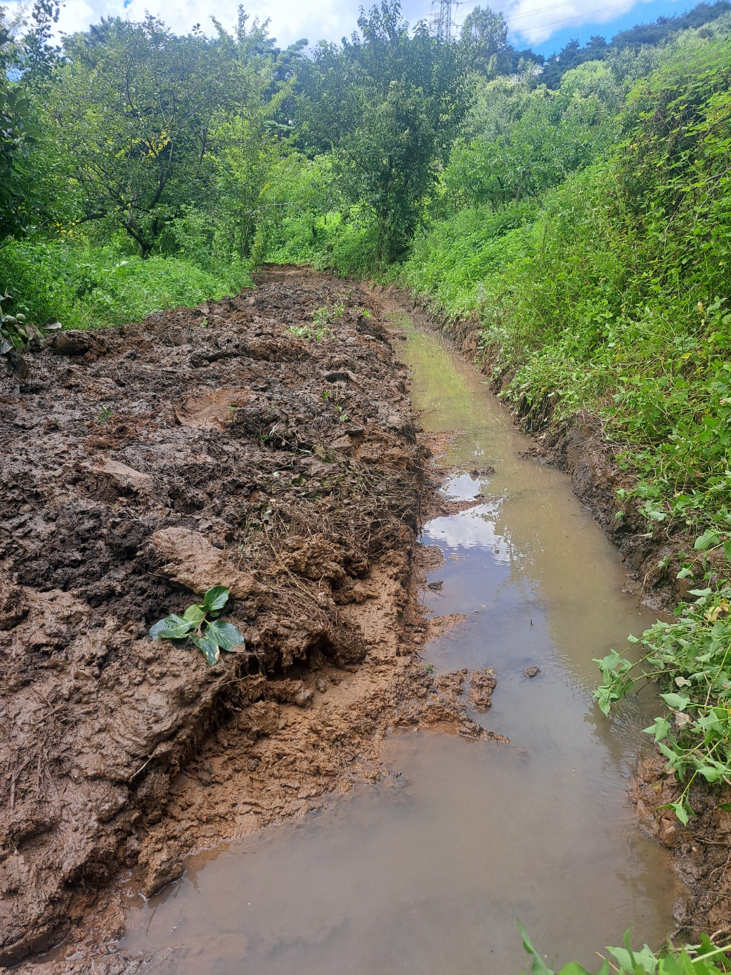 행정기관에 피해신고를 하였고 오늘부터 풍각면에서 주관하는 굴삭기가 투입되어 막힌 배수로 복구와 무너진 산사면을 정리하는 복구작업을 끝냈다.